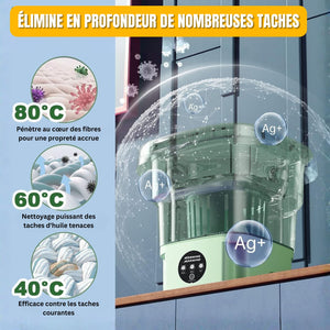 Mini Machine à Laver Portable et Pliable 8L avec Essorage et Stérilisation