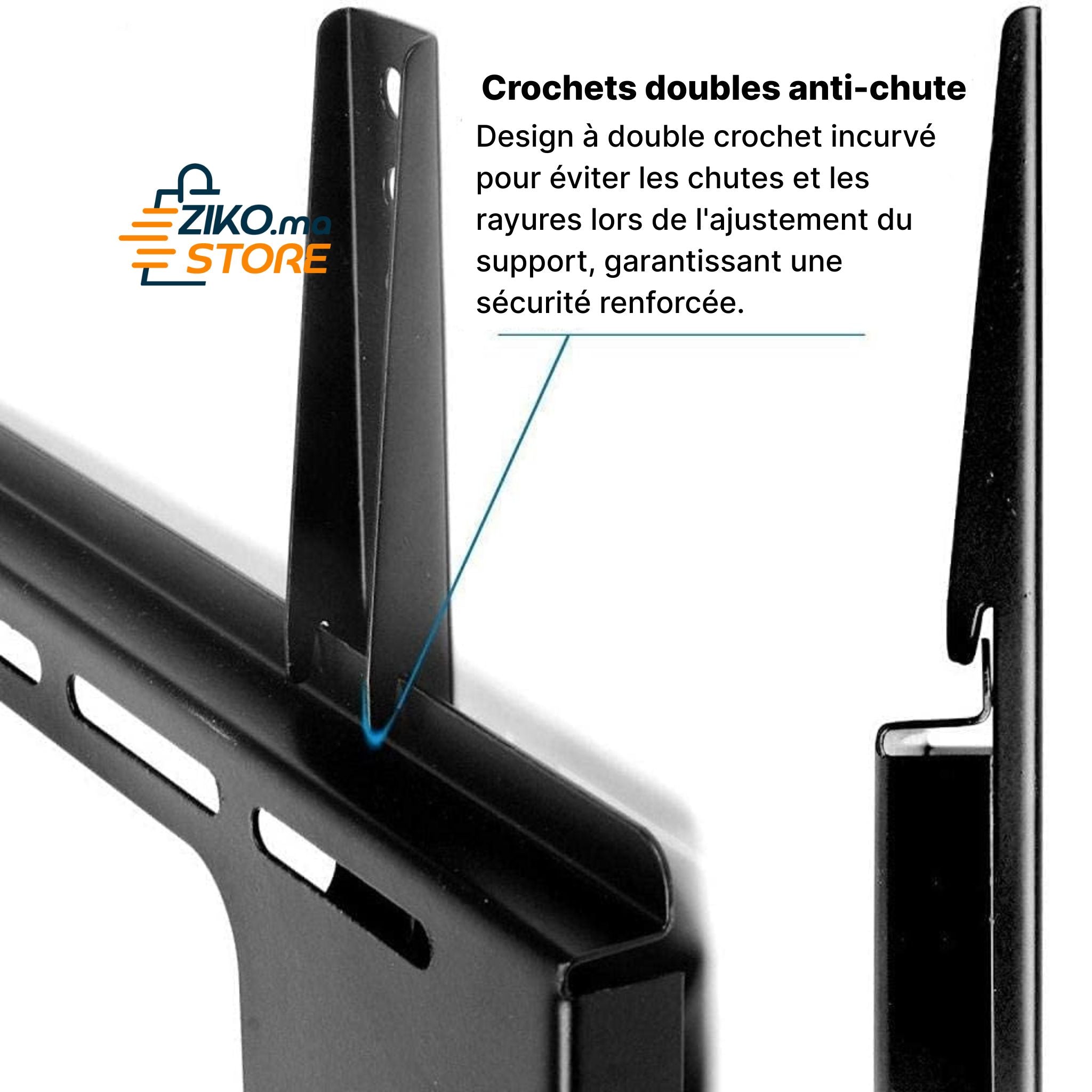 Fabriqué en acier robuste, il assure une fixation solide et durable pour votre téléviseur, garantissant une parfaite stabilité. L'installation est conçue pour être simple et rapide, réalisable en quelques minutes grâce au kit de montage complet et aux instructions claires fournis. En libérant de l'espace sur vos meubles, ce support vous permet de créer un environnement de loisir plus aéré et de profiter de votre écran dans des conditions optimales.